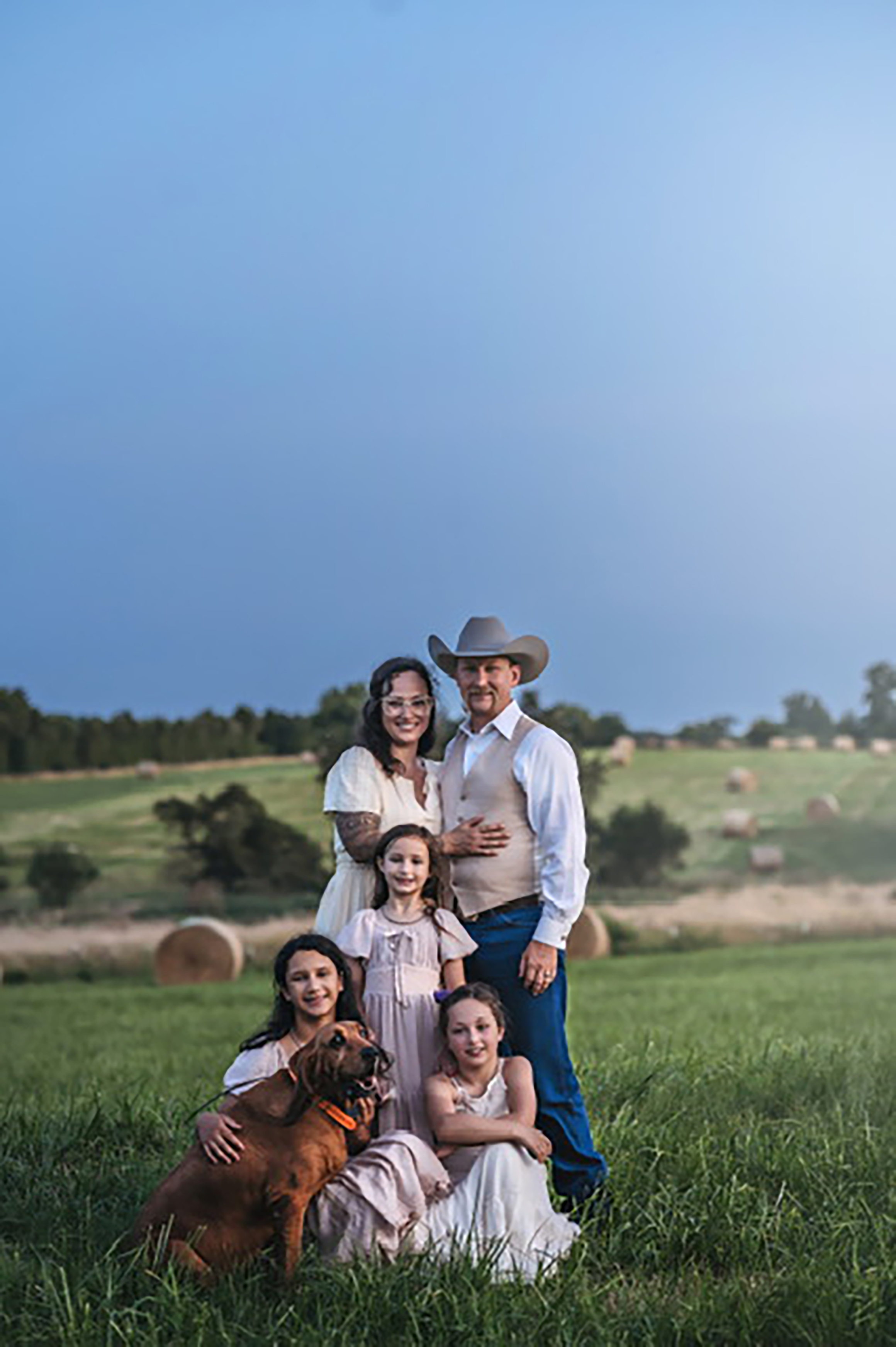 Ladybird and family. Jessica and Cory Johnson and their three daughters and bloodhound Ladybird live on a Missouri Century Farm that has been in Cory’s family since 1885. Missouri Century Farm is an MU Extension program that recognizes farms that have been in the same family for 100 years or more. Photo by Ashley Black of Red One Photography.